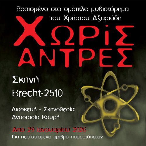 Βασισμένο στο ομότιτλο μυθιστόρημα του Χρήστου Αζαριάδη Διασκευή – Σκηνοθεσία: Αναστασία Κουρή Από 29 Ιανουαρίου | Κάθε Πέμπτη στις 20.00 Στη ΣΚΗΝΗ BRECHT -2510 Κρατήσεις: https://www.more.com/gr-el/tickets/theater/xoris-antres/ Ένας νέος κόσμος… χωρίς άντρες Μία συνηθισμένη ημέρα, όλοι οι άντρες του πλανήτη, πεθαίνουν ξαφνικά και ταυτόχρονα. Στις κατοικημένες περιοχές επικρατεί χάος, καθώς […]